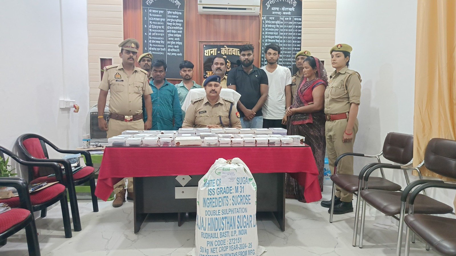 पुलिस द्वारा जारी की गई विज्ञप्ति में बताया गया है कि सीओ सदर सत्येन्द्र भूषण तिवारी को मुखबिर खास से कोतवाली थाना क्षेत्र स्थित टोल प्लाजा के पास एक दो मंजिला मकान में अनैतिक व्यापार होने की सूचना मिली। पता चला कि यहां लड़कियाँ, महिलाएं रुपया लेकर अनैतिक व्यापार करती है। यहां बाहर से भी महिलाएं, पुरुष आते है। सूचना पर सीओ सदर पुलिस टीम के साथ मौके पर पहुचे। आस पास के लोगो से जानकारी की तो उन्होंने अनैतिक व्यापार होने की पुष्टि की, लेकिन गवाही के लिए तैयार नहीं हुए। इसके बाद सीओ ने पुलिस टीम के साथ मकान का गेट खोलकर अचानक छापामारी की।  इस दौरान नगर थाना क्षेत्र के रानीपुर निवासी  शिवमूरत चौधरी (55), कोठवा भरतपुर निवासी रामकरन (48), राजू यादव (22), संतकबीरनगर जिले के बेलहरकला थाना क्षेत्र के मनैतापुर निवासी हिमेश त्रिपाठी (20), महुली थाना क्षेत्र के महेनिया निवासी अम्बुज पटेल (24), एवं बस्ती कोतवाली क्षेत्र के भुवर निरंजनपुर निवासी रेनू (42) को कमरे में मौजूद पाया गया। जिन्हे पुलिस ने गिरफ्तार कर लिया। पुलिस के अनुसार पूछताछ में शिवमूरत ने स्वयं को मकान मालिक और अम्बुज को अपना हिस्सेदार बताया। स्वीकार किया कि उनके द्वारा महिलाओं, लड़कियों, ग्राहकों को प्रेरित कर बुलाया जाता और देह व्यापार किया जाता है। देह व्यापार से अर्जित धन से मकान का किराया और लड़कियों को हिस्सा देने के बाद बचे पैसे को आधा- आधा बांट लेते है। पुलिस के अनुसार कमरे की तलाशी में एक बोरी में कण्डोम के 9 डिब्बे, 22 मोबाइल, 40 हजार 280 रूपए, एक डीबीआर, तीन क्यूआर कोड, 13 नीली, 16 पीली टोकन पर्ची, 9 इस्तेमाल शुदा कण्डोम बरामद हुए। मामले में पकड़े गए सभी के खिलाफ अनैतिक देह व्यापार अधिनियम की धारा में मुकदमा पंजीकृत कर आवश्यक विधिक कार्यवाही की गई है।