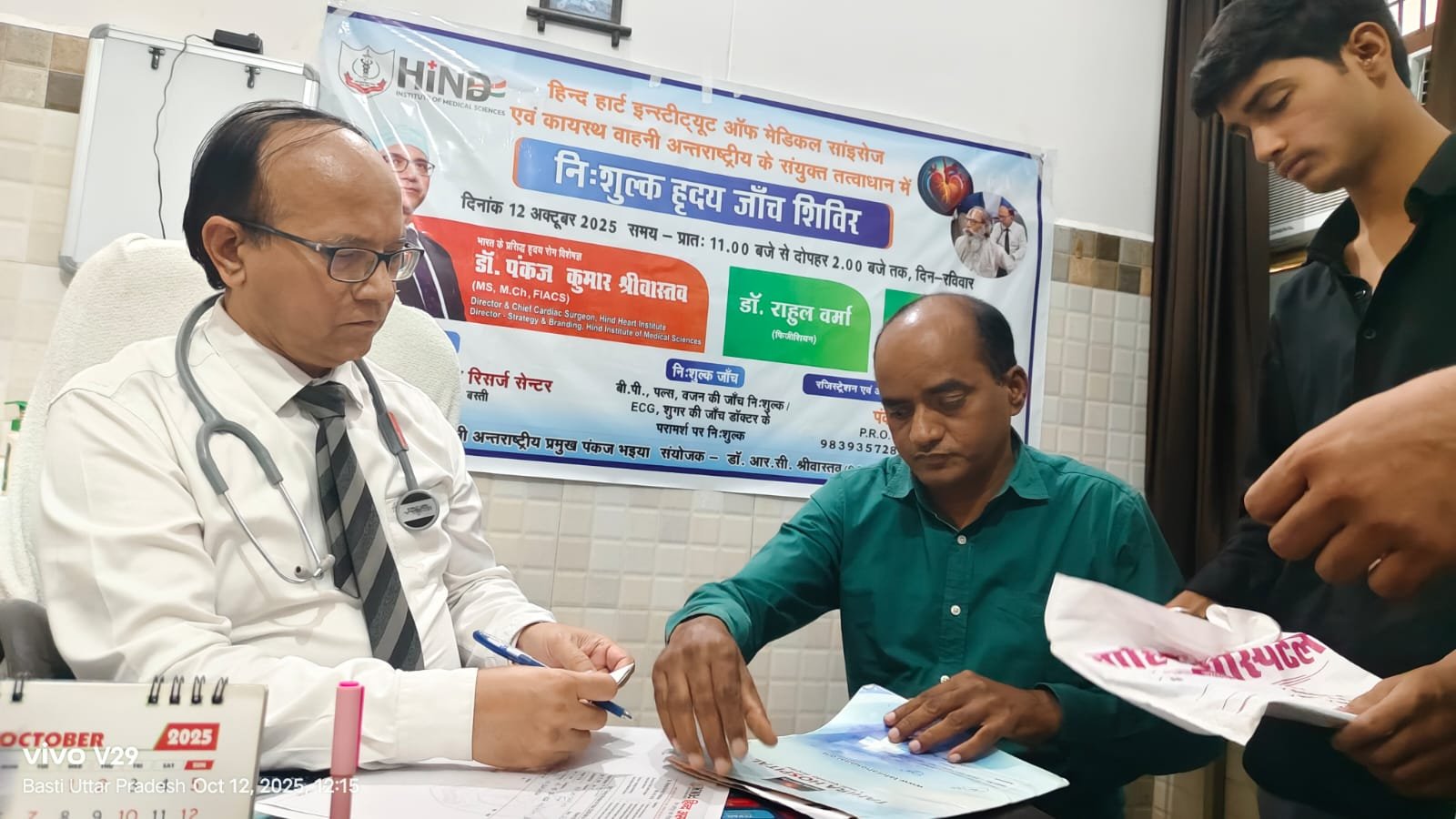 बस्ती। कायस्थ वाहिनी अन्तर्राष्ट्रीय एवं हिन्द हार्ट इन्स्टीट्यूट ऑफ मेडिकल साइंसेज लखनऊ की ओर से निःशुल्क स्वास्थ्य परीक्षण व परामर्श शिविर का आयोजन किया गया। शिविर का उद्घाटन नगर पालिका अध्यक्ष प्रतिनिधि अंकुर वर्मा, सदर विधायक प्रतिनिधि शैलेन्द्र दूबे ने किया। ब्लाक रोड स्थित एक निजी अस्पताल में आयोजित शिविर में 160 से अधिक मरीजों का स्वास्थ्य परीक्षण कर उन्हे उचित परामर्श दिया गया, जरूरतमंदों में दवाइयां वितरित की गईं।प्रख्यात सर्जन डा. पंकज कुमार श्रीवास्तव ने शिविर में आए लोगों को जागरूक किया। कहा कि हार्ट की बीमारी के लिये अब उम्र की कोई सीमा नही रही।