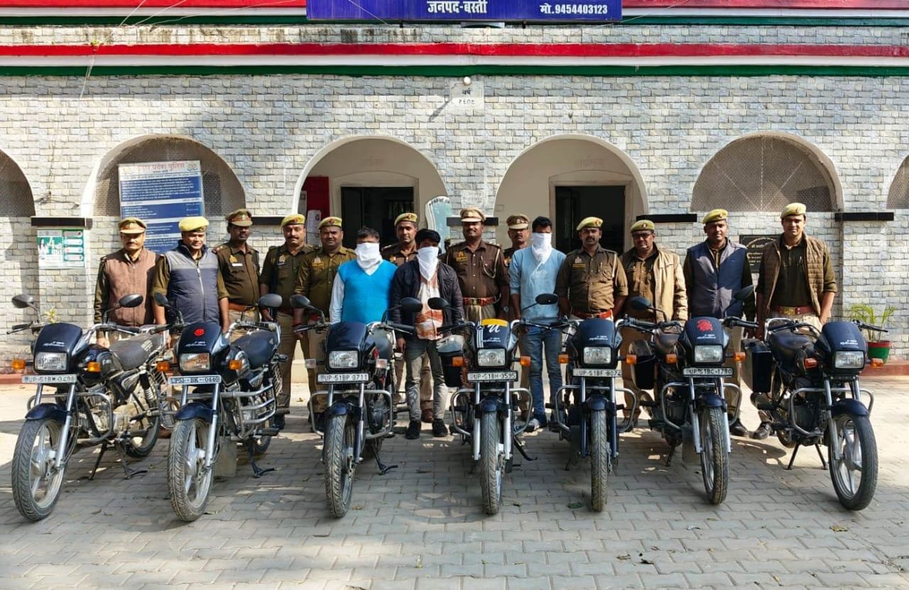पकड़े गए मोटर साईकिल चोरों की पहचान बस्ती जनपद के गौर थाना क्षेत्र के विशुनपुर निवासी कृष्णमणि पाण्डेय (38), सिद्धार्थनगर जनपद के भवानीगंज थाना क्षेत्र के भुईगांवा निवासी विक्रम गौतम (22), गोण्डा जनपद के खोड़ारे थाना क्षेत्र के कुक नगर टोला झुनखुनिया अहिरनडीह निवासी मुकेश यादव (26) के रूप में हुई। उनके पास से सात चोरी की मोटर साईकिल, दो मोबाइल बरामद किया गया।