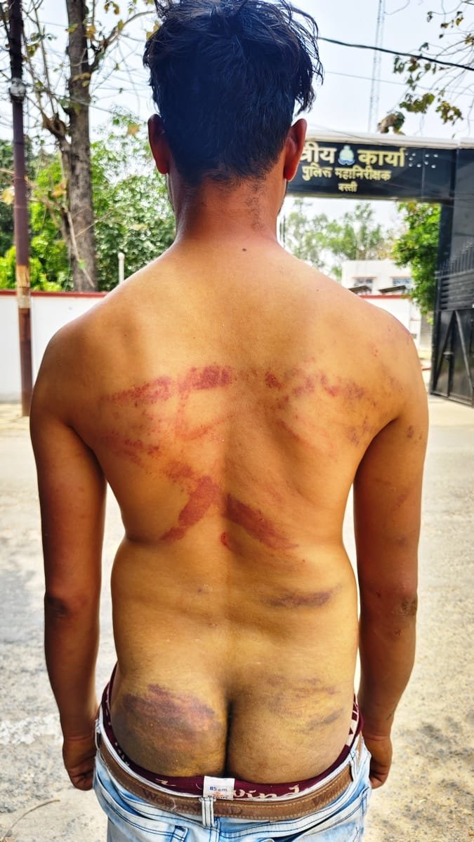 बस्ती । नर्सिंग होम में टाइल्स लगवाने वाले ठेकेदार गोविन्द निषाद को मजदूरी मांगना भारी पड़ गया। मजदूरी मांगने पर दबंगों ने उसे बेरहमी से पीटा। उसके शरीर पर पिटाई के निशान बर्बरता को बयां कर रहे हैं। बर्बरता के शिकार पीड़ित ठेकेदार ने न्याय के लिए पुलिस से गुहार लगाया, लेकिन पुलिस ने उसकी फरियाद नहीं सुनी। सरदार सेना जिलाध्यक्ष विनय चौधरी को इसकी जानकारी हुई तो वे उसे साथ डीआईजी के यहां पहुंचे। उनसे मिलकर न्याय की गुहार लगाया। डीआईजी ने मामले में तत्काल कार्रवाई का आश्वासन दिया है।